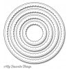 I started by using a retired Market Street Stamps woodgrain background stamp with Versamark on kraft cardstock and then cut out a mat with a stitched rectangle die from Simon Says Stamp. I also stamped an additional strip and used stitched scallop dies from My Favorite Things to cut three circular frames. I also cut some black circles to go behind the frames using dies from Simon Says Stamp. The sweet mice and apples are from My Favorite Things' Harvest Mouse set - which I bought in spring as it was just TOO cute to pass up! The sentiment is from the same set and heat embossed in white. I cut it with a retired die from My Craft Spot.